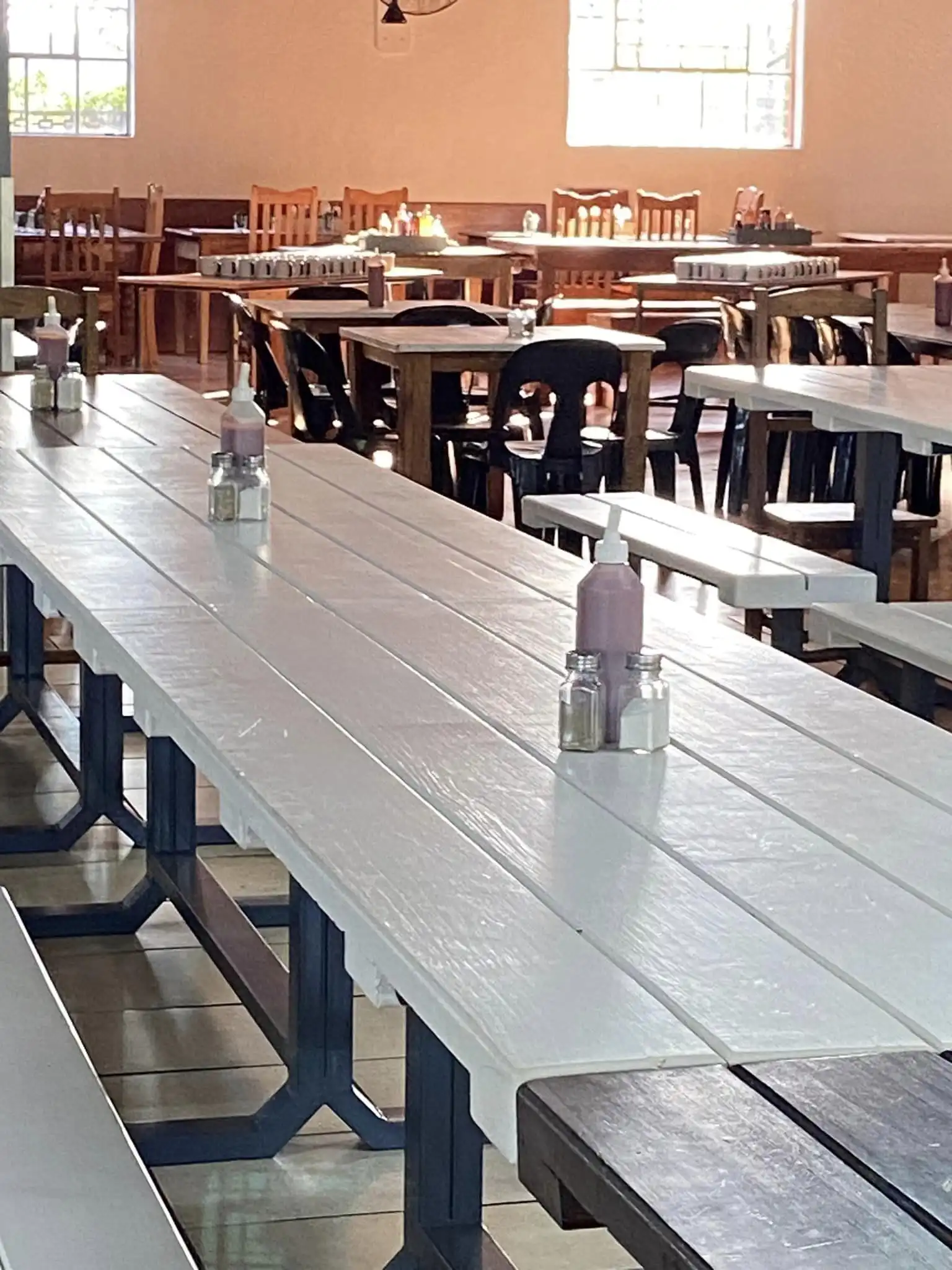 Savor fantastic meals in our lively dining room, featuring wooden tables that can host up to a whopping 230 guests!